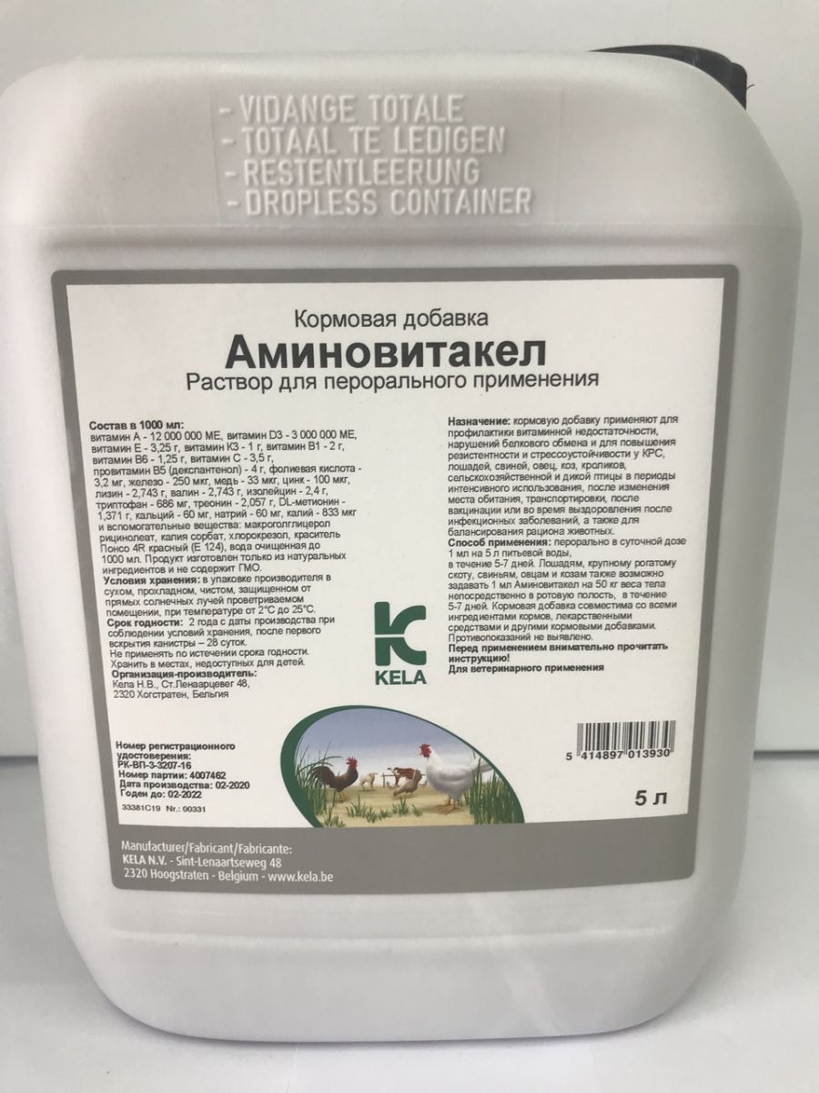 Жидкая кормовая добавка, содержащая витамины, аминокислоты, микроэлементы. Добавляют в питьевую воду во время периодов наивысшей продуктивности, после перегруппировок или транспортировки птицы, вакцинации и выздоровления после инфекционных заболеваний.