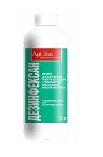Дезинфексан. Упаковка1 л,состав: алкилдиметилбензиламмония хлорид, дидецилдиметиламмония хлорид, глутаровый альдегид) Раствор для дезинфекции объектов ветеринарного надзора и профилактики инфекционных болезней животных.Дезинфексан обладает широким спектром действия в отношении возбудителей инфекционных болезней бактериальной, вирусной и грибковой этиологии, активен в отношении грамположительных и грамотрицательных бактерий, в том числе микобактерий туберкулеза и спорообразующих микроорганизмов.По степени воздействия на организм средство относится к умеренно опасным веществам (3 класс опасности согласно ГОСТ 12.1.007-76). В рекомендуемых концентрациях не оказывает местно-раздражающего и сенсибилизирующего действия. Рабочие растворы Дезинфексана не обладают коррозионной активностью, не портят материалы обрабатываемых поверхностей. Дезинфексан применяют для проведения профилактической и вынужденной (текущей и заключительной) дезинфекции объектов ветеринарного надзора, включая:- животноводческие, птицеводческие и звероводческие помещения, находящееся, в них технологическое оборудование, вспомогательные объекты (включая инкубатории, яйцесклады), молочные блоки и кормокухни, санитарно-техническое оборудование, санитарные бойни, открытые объекты (рампы, эстакады, платформы), тару и спецодежду; ― производственные помещения, технологическое оборудование и территорию, предприятий биологической, пищевой, перерабатывающей промышленности;- транспортные средства (включая автомобильный, железнодорожный, водный и авиационный транспорт, используемый для перевозки животных и птицы, а также сырья и продукции животного происхождения);- ветеринарные клиники (станции), лаборатории, виварии, цирки и зоопарки. Перед проведением дезинфекции необходимо проводить тщательную механическую очистку, мойку и обезжиривание обеззараживаемых поверхностей, так как органические загрязнения снижают дезинфицирующую активность средства.2. Дезинфекция животноводческих помещений проводится в отсутствие животных. 3. Рабочие растворы готовят путем добавления соответствующих количеств средства к водопроводной воде с температурой 18-25°С. При расчете концентрации рабочих растворов средство принимают за 100% вещество.4. Для профилактической дезинфекции вышеуказанных объектов, имеющих гладкую поверхность, методом мелко капельного орошения, генерирования пены или протирания дезинфицируемых поверхностей применяют водный (рабочий) раствор Дезинфексана в концентрации 0,25% при норме расхода 0,25 л/м2 и экспозиции 20 мин. Шероховатые поверхности дезинфицируют водным (рабочим) раствором Дезинфексана в концентрации 0,25% при норме расхода 0,35 л/м2 и экспозиции 30 мин.5. Для проведения вынужденной дезинфекции (текущей и заключительной) при инфекционных заболеваниях бактериальной и вирусной этиологии (включая туберкулез) вышеуказанных объектов, имеющих гладкие или шероховатые поверхности, применяют водный (рабочий) раствор Дезинфексана в концентрации 2% при норме расхода 0,3 л/м2 и экспозиции 1 час методом мелкокапельного орошения, генерирования пены или протирания дезинфицируемых поверхностей.6. Для проведения вынужденной (текущую и заключительную) дезинфекции при африканской чуме свиней (АЧС) на вышеуказанных объектах, имеющих гладкие и шероховат