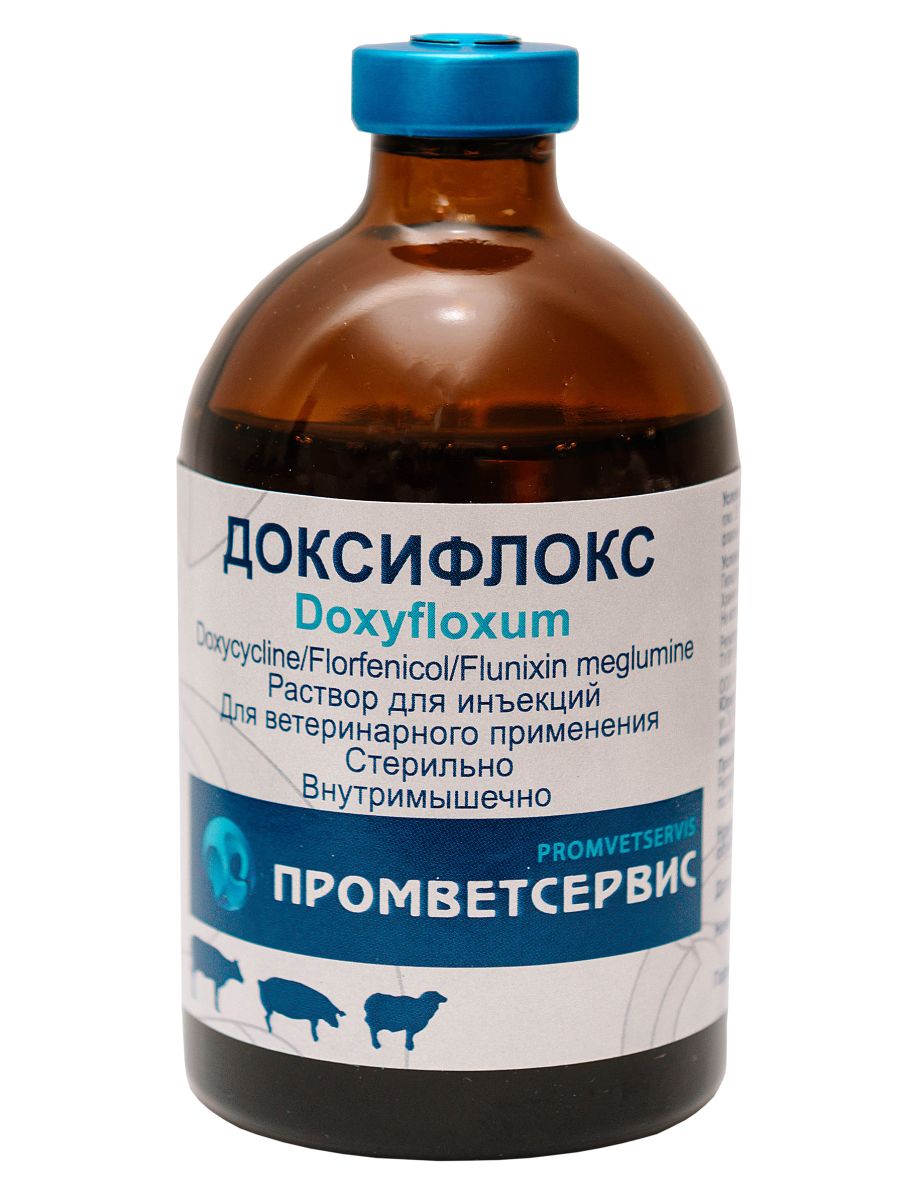 Доксициклин, входящий в состав препарата, относится к полусинтетическим антибиотикам тетрациклиновой группы третьего поколения, активен в отношении грамположительных и грамотрицательных микроорганизмов, в т. ч. Escherichia coli, Yersinia enterocolitica, Bordetella pertussis, Shigella spp., Haemophilus spp., Pasteurella spp., Salmonella spp., Staphylococcus spp., Streptococcus spp., Klebsiella pneumoniae, Leptospira spp., Clostridium spp., Listeria monocytogenes, Corynebacterium pyogenes, Erysipelothrix rhusiopathiae, Fusobacterium necrophorum, Actinobacillus spp., Rickettsiae spp., Chlamydia spp., а также Mycoplasma spp. Механизм бактериостатического действия доксициклина связан с подавлением активности ферментов, катализирующих связывание аминоацетил-РНК с рибосомальными акцепторами, что приводит к блокированию взаимодействия аминоацилтранспортной РНК с матричной РНК и нарушению синтеза белка микробной клетки. После парентерального введения препарата доксициклин хорошо и быстро всасывается из места инъекции, достигая терапевтических концентраций через 0,5 – 1 час, легко проникает в большинство органов и тканей животного, где сохраняется в терапевтической концентрации в течение 48 – 72 часа. Метаболизируется в печени с образованием неактивных метаболитов. Выводится из организма животного главным образом с желчью и частично с мочой. Доксилокс по степени воздействия на организм теплокровных животных относится к умеренно опасным веществам, в рекомендуемых дозах не обладает эмбриотоксическим, тератогенным и гепатотоксическим действием.