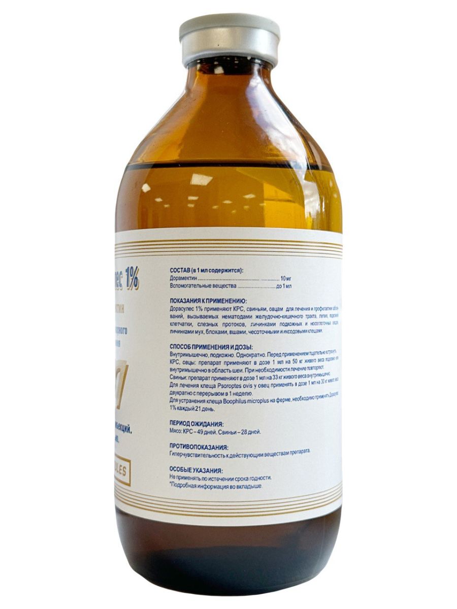 Торговое наименование лекарственного препарата: Дорасулес 1% (Dorasules 1%). Международное непатентованное наименование: дорамектин. Лекарственная форма: суспензия для инъекций.