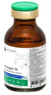 Неозидин М вводят животным внутримышечно однократно из расчета 1 мл препарата на 20 кг массы животного. В случаях, если у больных животных после первого введения препарата не отмечается снижение температуры и улучшения общего состояния, допускается повторное использование Неозидина М в той же дозе через 24 часа. Собакам препарат применяют дробно в два приема с интервалом 1 – 2 часа или в один прием, при условии разведения рассчитанного для введения животному объема раствора Неозидина М стерильным растворителем (дистиллированная вода, физиологический раствор) в соотношении 1:1. Одновременно с Неозидином М собакам рекомендуется введение антигистаминных лекарственных средств в соответствии с инструкциями по применению. Больным животным предоставляют покой и дополнительно используют в зависимости от физиологического состояния симптоматические средства (сердечные, слабительные, витамины, микроэлементы). С профилактической целью при обнаружении в стаде одного или нескольких животных с клиническими признаками болезни, а также после перегона животных в неблагополучную по кровепаразитарным заболеваниям местность, Неозидин М применяют однократно в терапевтической дозе, при необходимости инъекцию повторяют в той же дозе через 10 – 15 дней. Если рассчитанный объем вводимого раствора превышает 10 мл, то, во избежание болевого эффекта, раствор следует вводить животному в несколько мест. Перед массовой обработкой животных каждую серию Неозидина М предварительно испытывают на небольшой группе (5 – 10 голов) животных. При отсутствии в течение 3 суток осложнений, обрабатывают все поголовье.