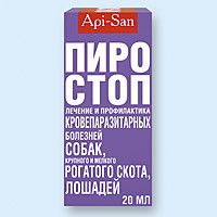 Пиро-стоп для лечения кровепаразитарных болезней животных 20 мл