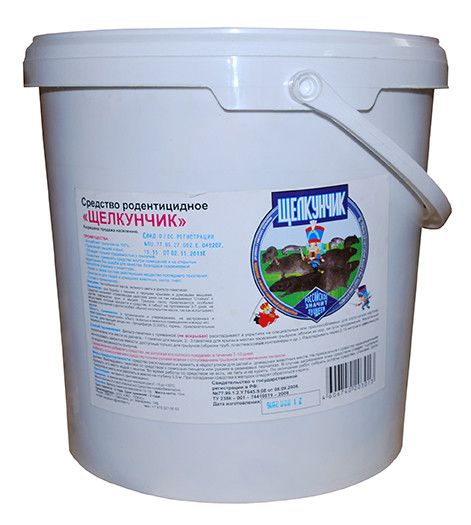 Готовая к применению отравленная приманка, содержащая в качестве действующего вещества 0,005% бродифакум. По внешнему виду средство "Щелкунчик" представляет собой тестообразную массу темносинего или красного цвета, упакованную в фильтр-пакетики массой 10 г. Средство в фильтр-пакетиках упаковано в герметичные полимерные пакеты массой от 200 г до 500 г (для населения), массой 1 кг, 2 кг, а также в полимерные ведра с герметично закрывающейся крышкой от 3 кг до 10 кг (для дезслужбы).