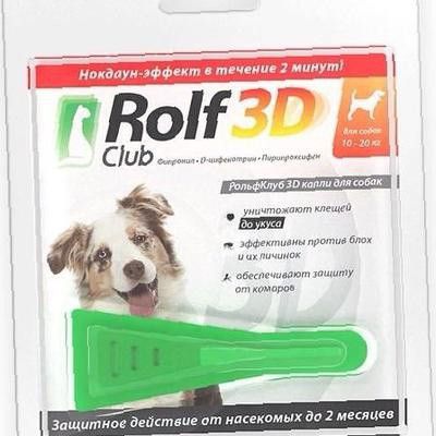 Рольф Клуб 3D по степени воздействия на организм собак относится к умеренно опасным веществам (3 класс опасности по ГОСТ 12.1.007-76), не обладает местно-раздражающим и сенсибилизирующим действием.