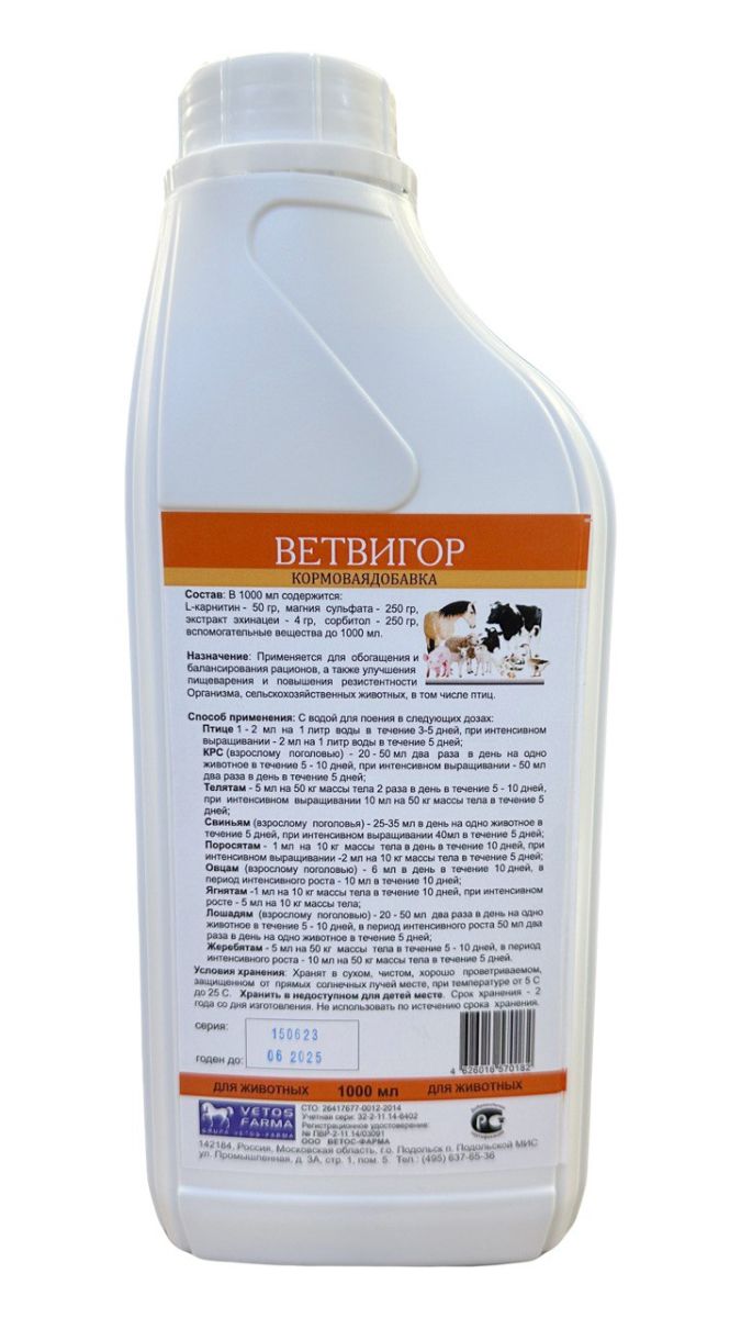 Применяется для профилактики стрессов и жировой дистрофии печени, улучшения метаболических процессов, повышения общей резистентности организма у сельскохозяйственных животных. Ветвигор совместим со всеми ингредиентами кормов, лекарственными средствами и другими кормовыми добавками, стимулирует аппетит, рост и продуктивность животных и птиц. Увеличивает привесы и сохранность поголовья.
