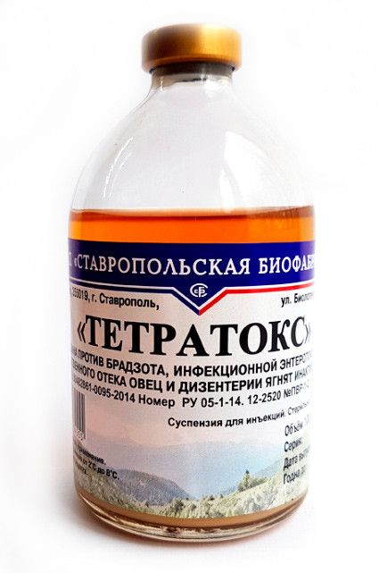 Состав: Вакцина изготовлена из смеси инактивированных формалином (в концентрации до 0,1%) и осажденных гидратом окиси алюминия (в концентрации 15-18%) токсикогенных производственных штаммов Clostridium perfringens типов В или С, Clostridium perfringens Д, Clostridium oedematiens, Clostridium septicum.