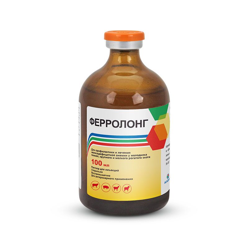 Для профилактики и лечения железодефицитной анемии молодняка с/х животных назначают препараты, содержащие, как правило, декстран железа в разных концентрациях. Ферролонг содержит в своем составе максимальную концентрацию железодекстрана и витамин В12, которые в комплексе обеспечивают необходимый уровень гемоглобина в крови.